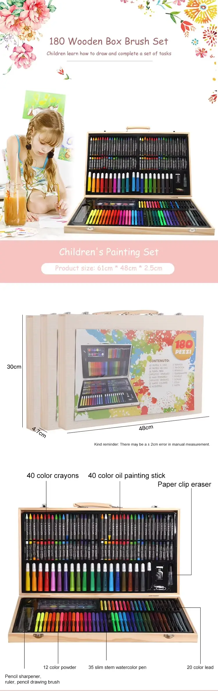 *180pcs 아트 세트의 측정: 30*48*4.7cm
