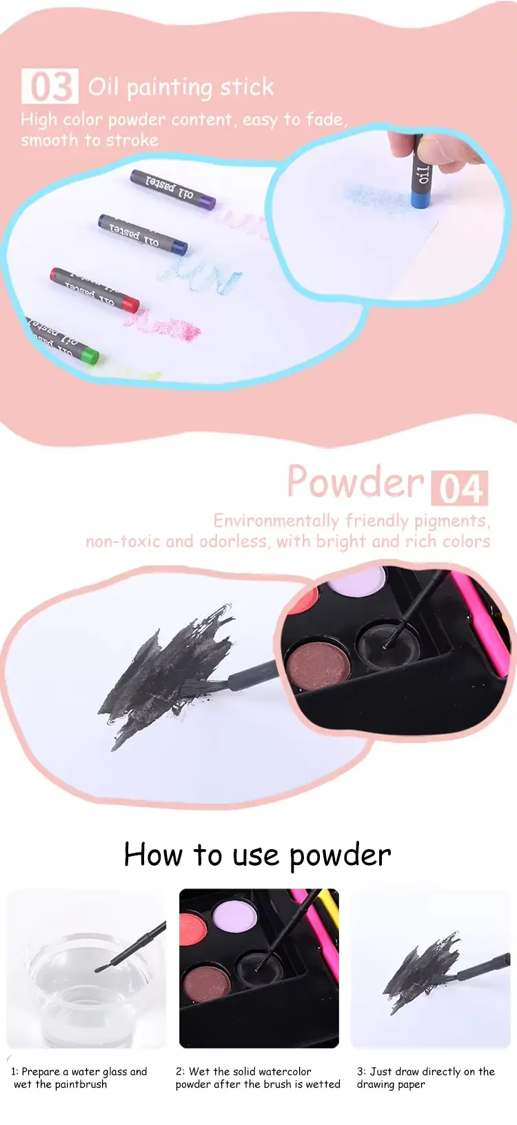* OEM & ODM: 예술 세트 중국 공장으로서 우리는 당신을 위해 OEM 주문을 잘합니다. 또한 생산 공정에서 품질과 생산 시간을 완전히 제어 할 수 있습니다.