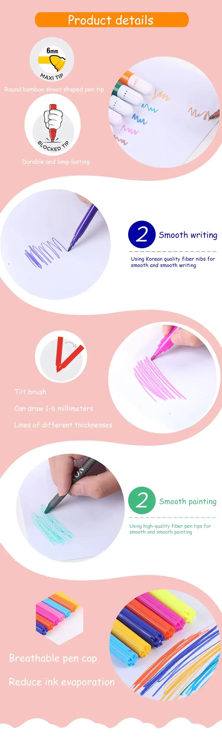 *장점: 물, 식품 등급 원자재, 화려한 색상, 혼합 컬러 매칭 창의성, 전문 펜 바디 디자인 및 용량 확장 내구성과 오래 지속