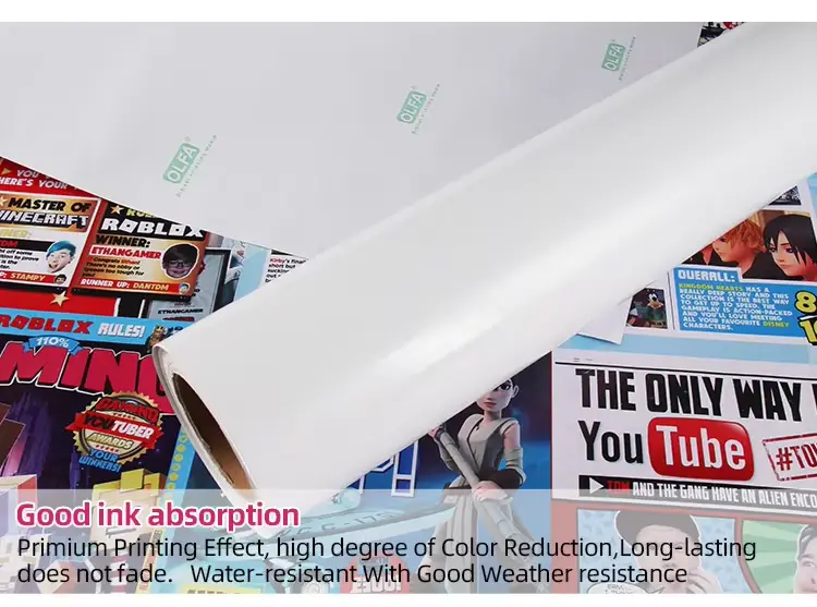 *흡착제: 우리의 PVC 포스터 페이퍼는 잉크를 빠르게 흡수하면 잉크를 빠르게 건조시킬 수 있습니다. 또한 코팅은 그림을 3 차원으로 만들 수 있습니다.
